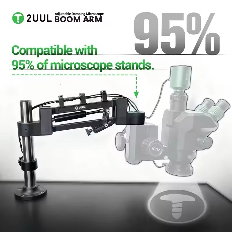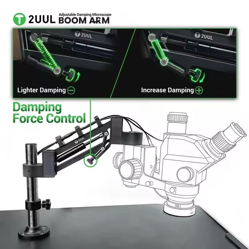 The 2UUL MS71 is a high-performance microscope boom arm designed specifically for micro-soldering, jewelry repair, and laboratory work. It is particularly popular for its “damping” mechanism, which prevents the microscope from falling abruptly when the lock is released.