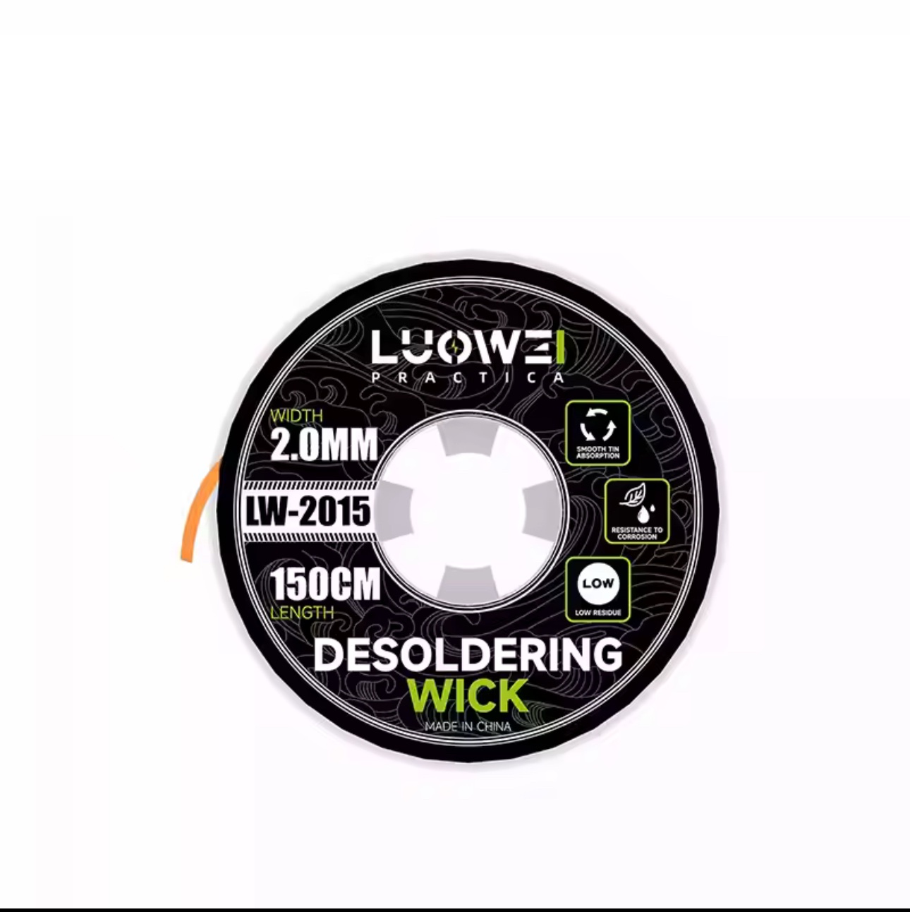 The LUOWEI LW-20153015 2.0mm Desoldering Mesh Braid Tape is designed to simplify soldering work by offering exceptional precision and efficiency in removing unwanted solder. Crafted with high-quality copper material, this soldering wick provides unparalleled conductivity and durability, making it an indispensable tool for professional technicians and DIY enthusiasts alike.