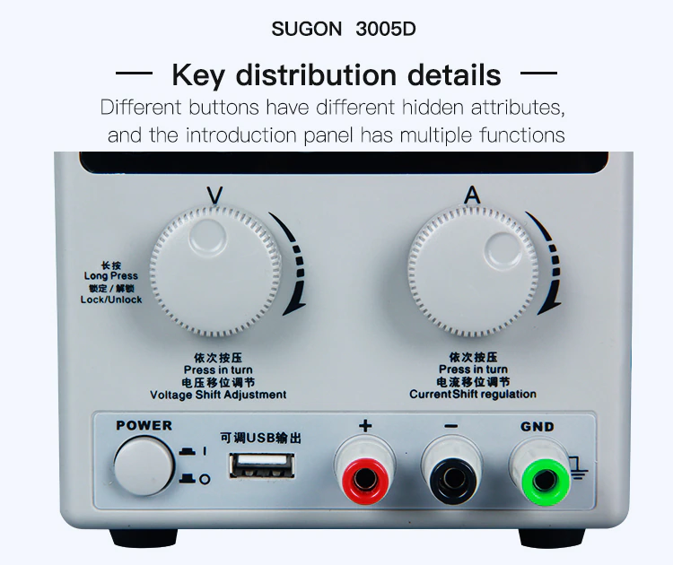 Equipped with a short killer function, the Sugon 3005D ensures that your equipment is protected from accidental shorts. Additionally, its digital display offers clear and precise readouts, making adjustments easy and accurate.